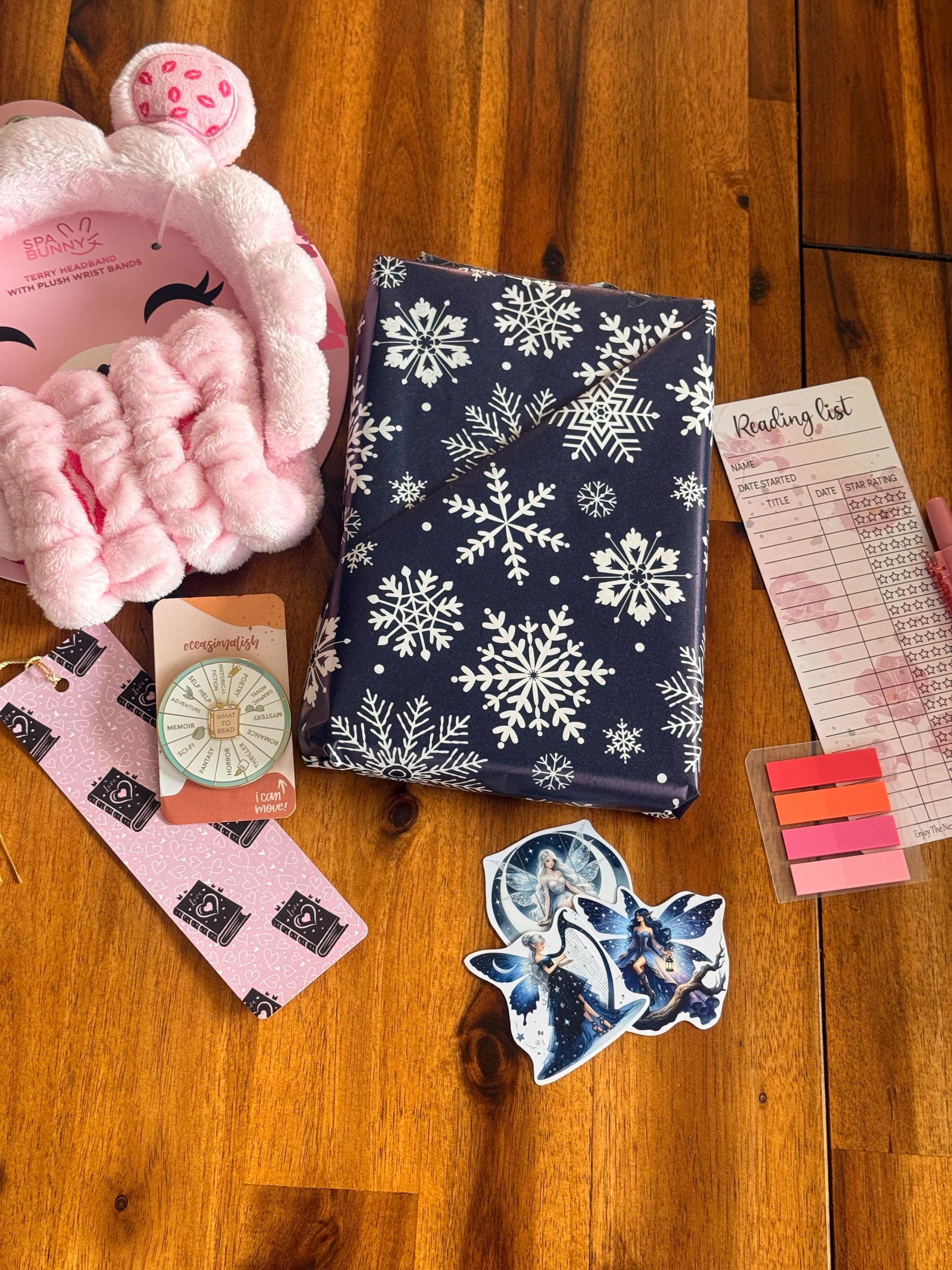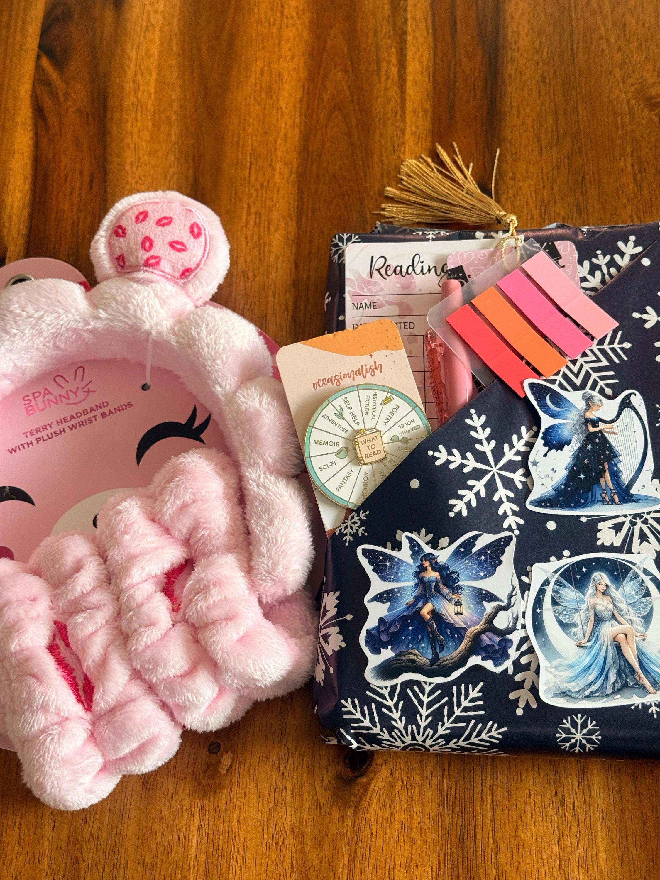 This bundle includes a Young Adult (YA) book- meaning it's "non-spicy' and perfect for cozy, age- appropriate reading. Please choose your extra: a spa headband or an eyeshadow palette.