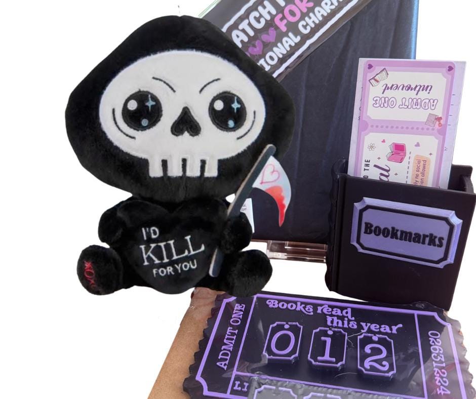 • The Essentials: A "Books Read This Year" tracker and a dedicated "Bookmarks" holder to keep your shelf organized. This may be different than the one in the photo.